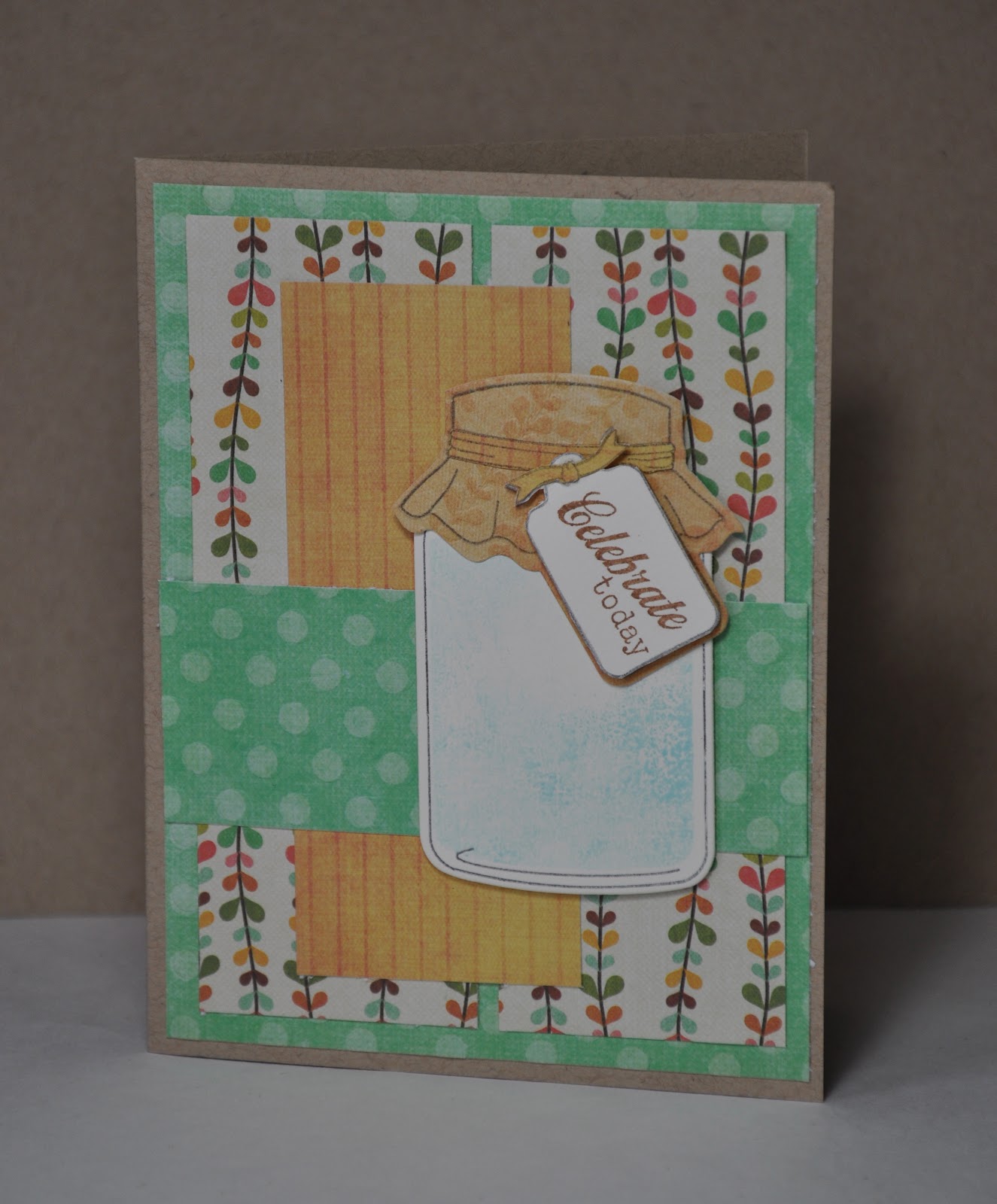 I quickly needed a card for my sister yesterday and I didn't have much inspiration. So I went over to the CPS blog, liked the sketch and made my card. Most time went into the jar topper, I paper pieced that one. More work but worth it.